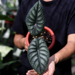 - Ukuran Kompak: Sebagai bagian dari keluarga Jewel Alocasia, pertumbuhannya cenderung kompak dan tidak memakan banyak tempat, ideal untuk para kolektor dengan ruang terbatas.