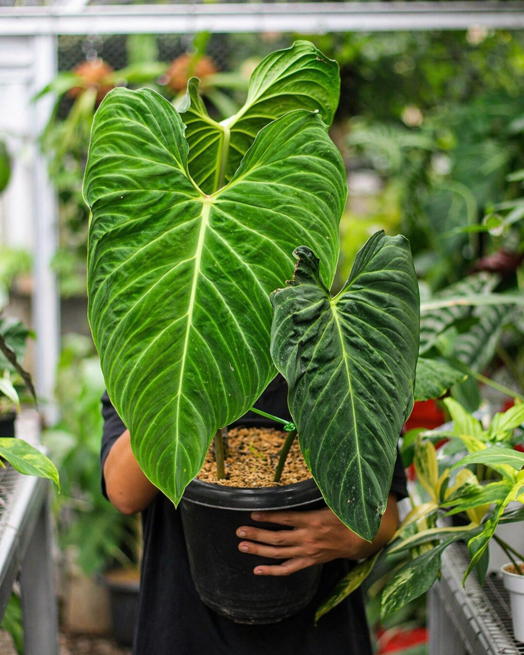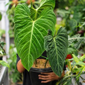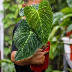Philodendron Splendid adalah tanaman hybrid yang luar biasa, hasil persilangan antara Philodendron Melanochrysum dan Philodendron Verrucosum. Sebagai anggota keluarga Araceae, tanaman ini mewarisi sifat terbaik dari kedua induknya.